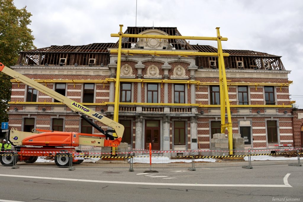L’ancien hôtel de ville de Tamines est corseté durant les travaux de modernisation et de changement d’affectation.